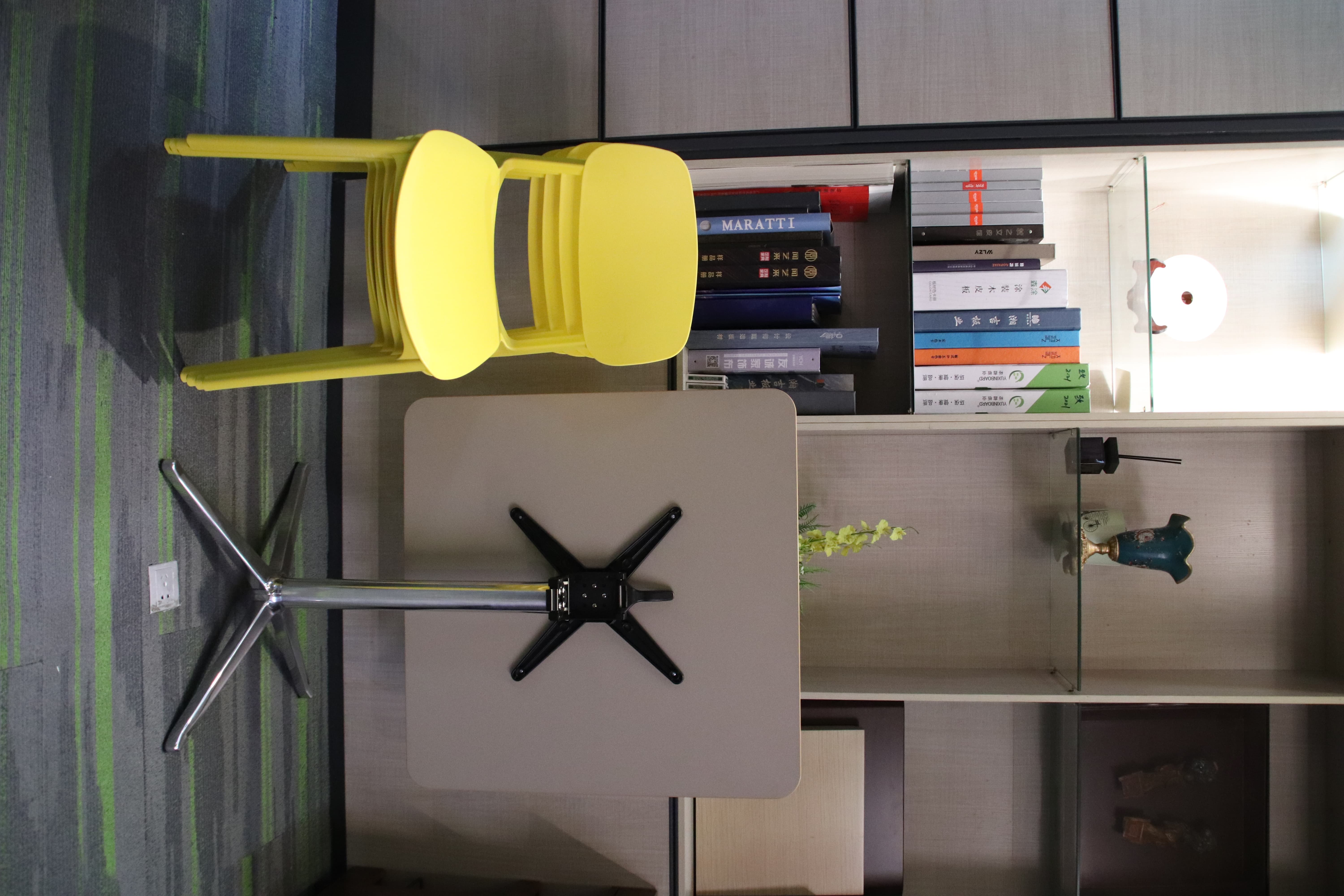 材質說明:臺面:E0級刨花板,激光封邊,防水效果;臺架可折疊,減小占地空間;椅子顏色多樣,可堆疊,減少占地空間