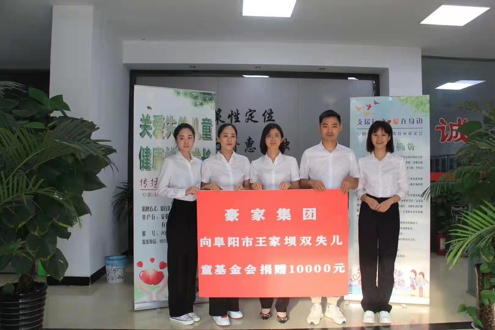 豪家股份向阜陽市王家壩雙失兒童基金會捐贈