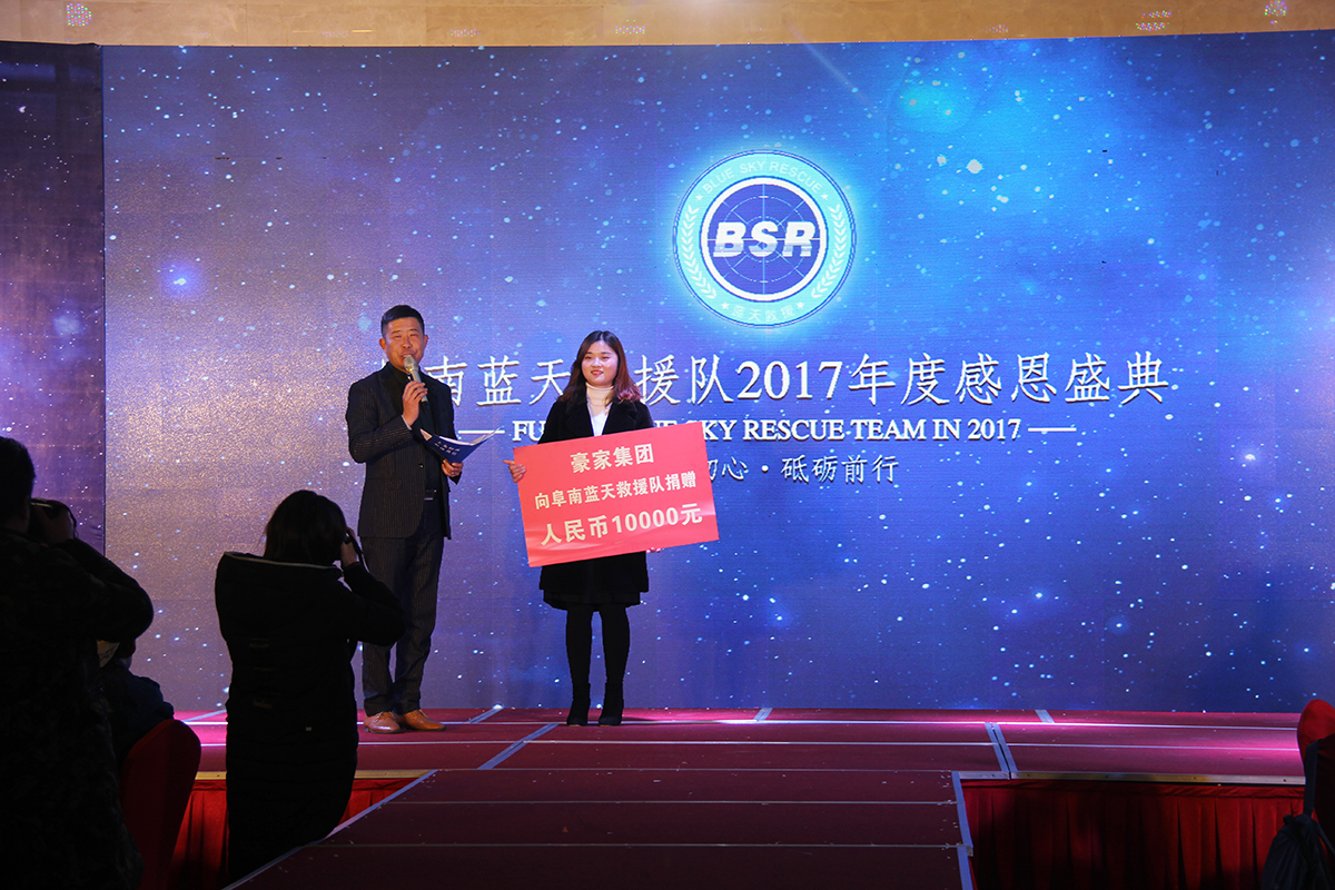 豪家股份向阜南藍天救援隊捐贈